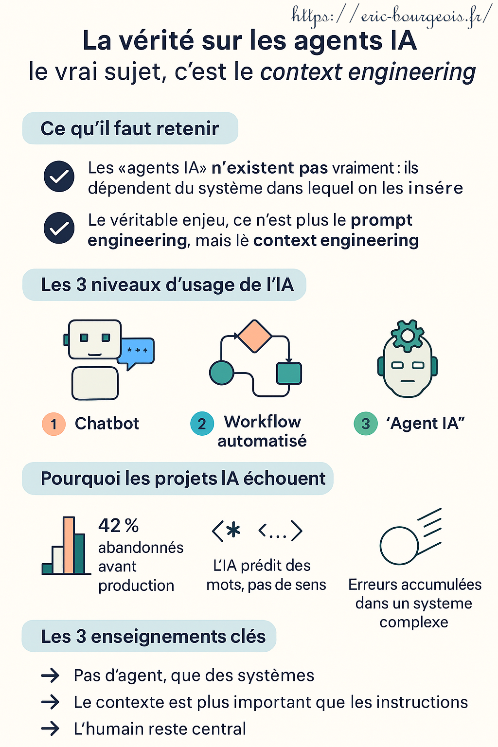 🎯 Le vrai levier de réussite ? Le context engineering : maîtriser les données, les outils, les règles du jeu.